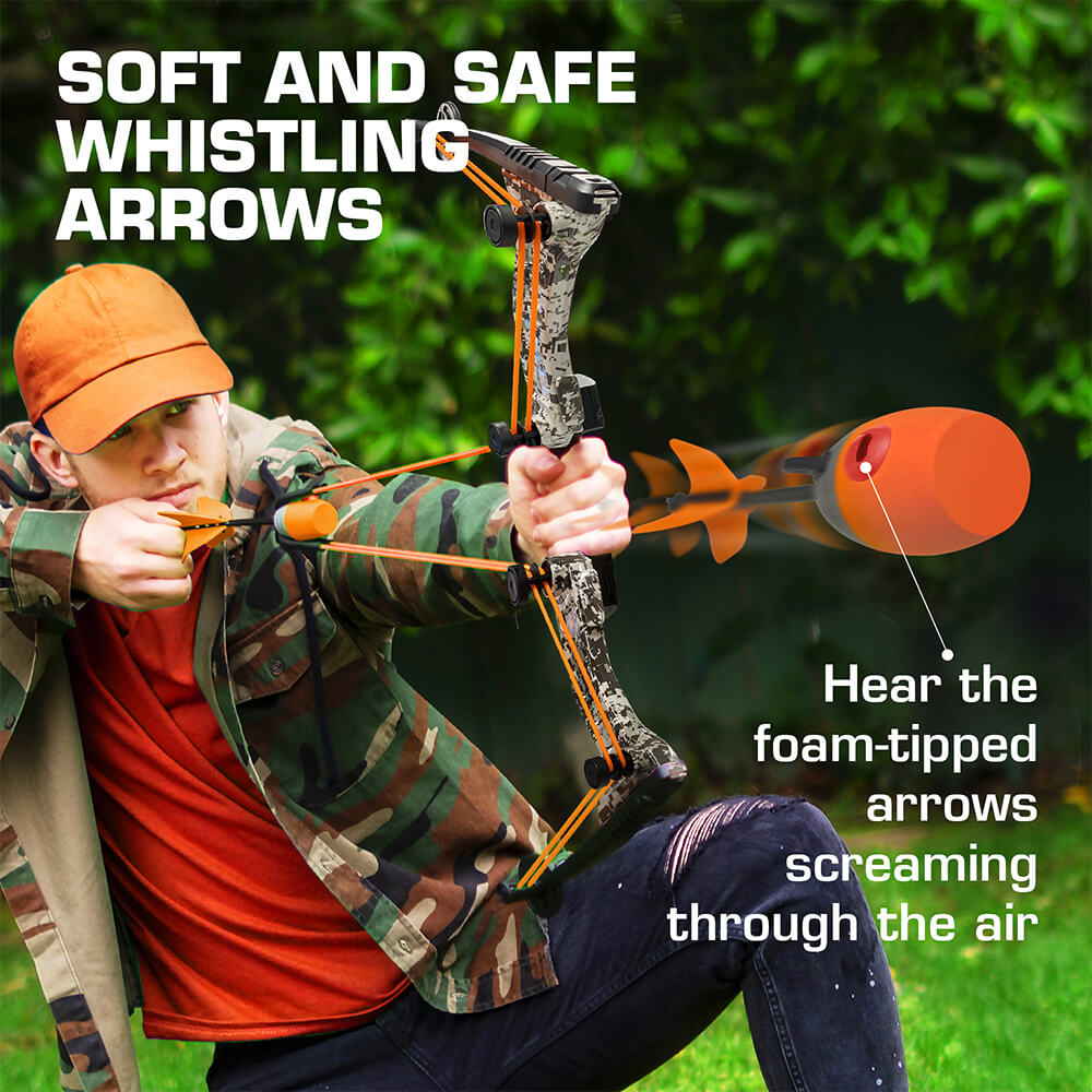 - SOFT AND SAFE WHISTLING ARROWS: The Zonic arrows have a foam tips, allowing them to bounce back after hitting their target. Works only with ZiNG’s soft and safe arrows, so nothing dangerous can be launched. Battles are exciting as well as safe! With the embedded whistle, you’ll hear the Zonic arrows screaming through the air as they zoom towards your target!